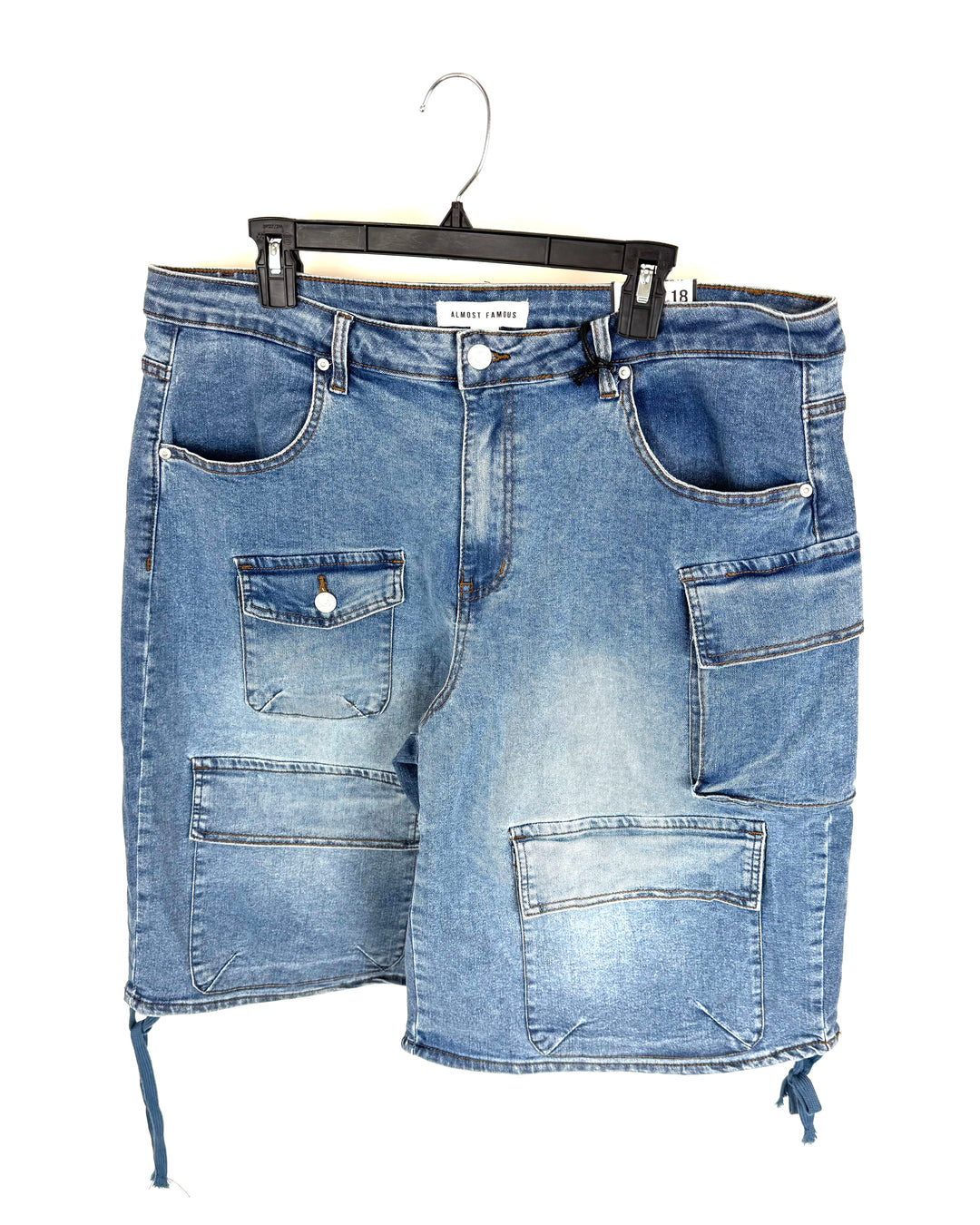 Light Wash Blue Denim Cargo Shorts - Size 18