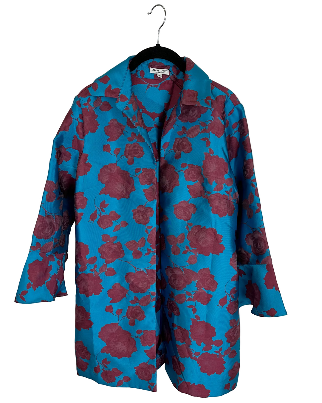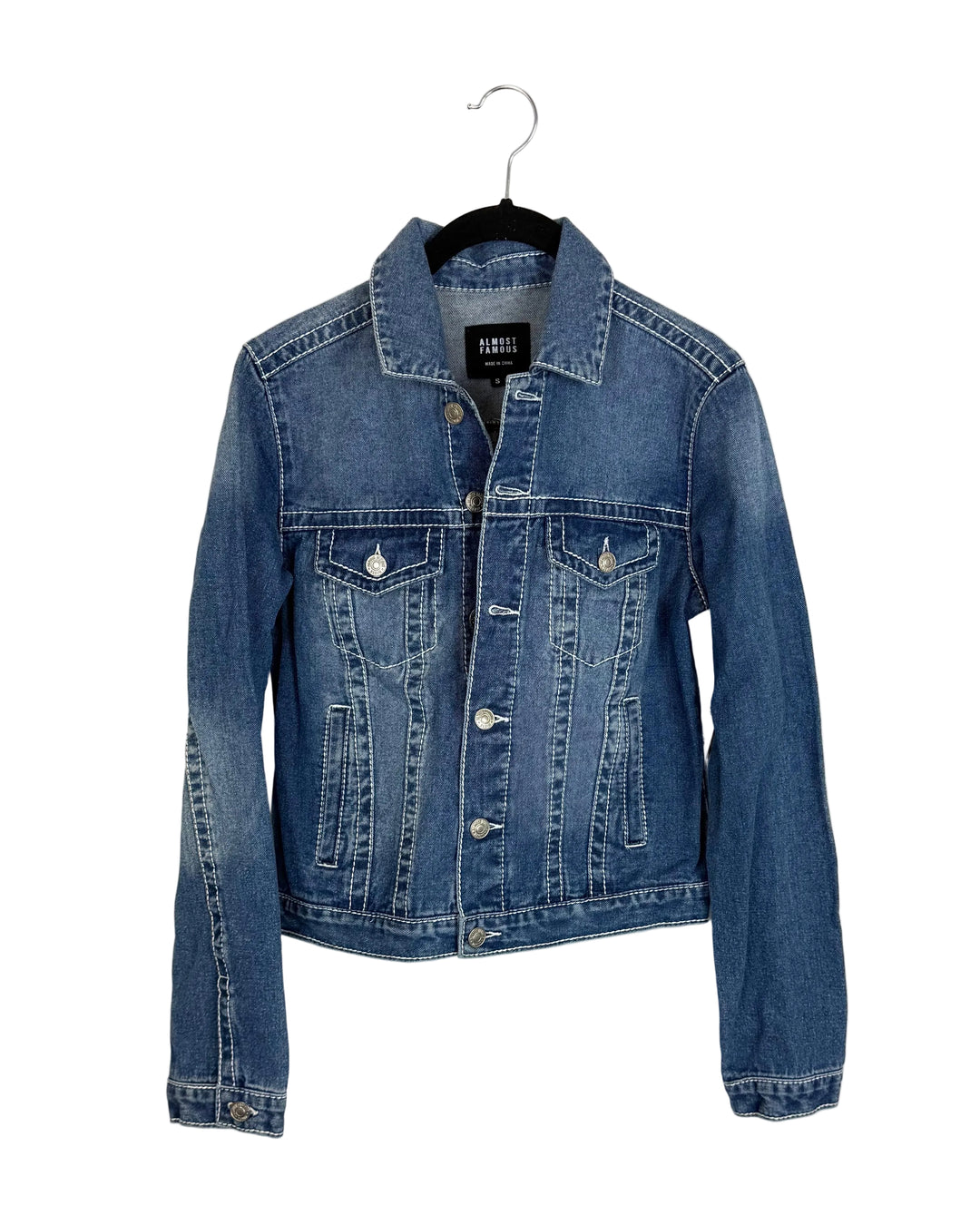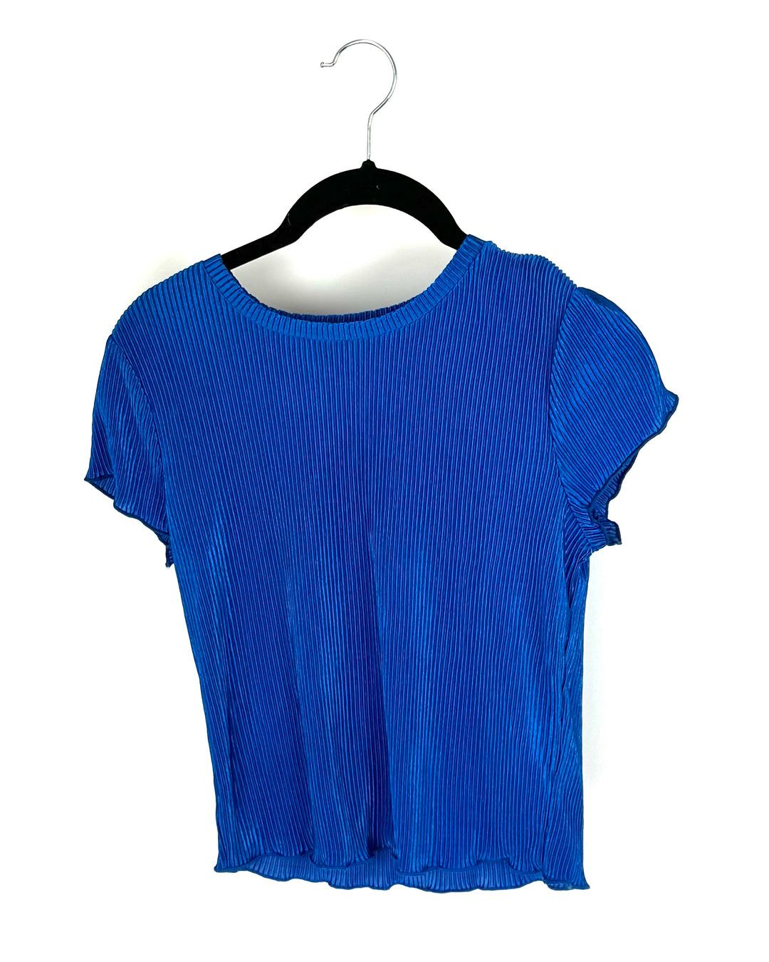Dark Ocean Blue Short Sleeve Plissé Top - Size 2/4
