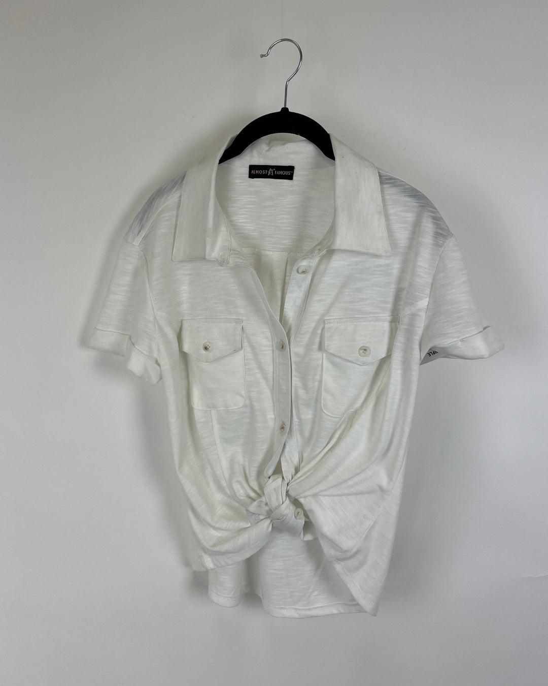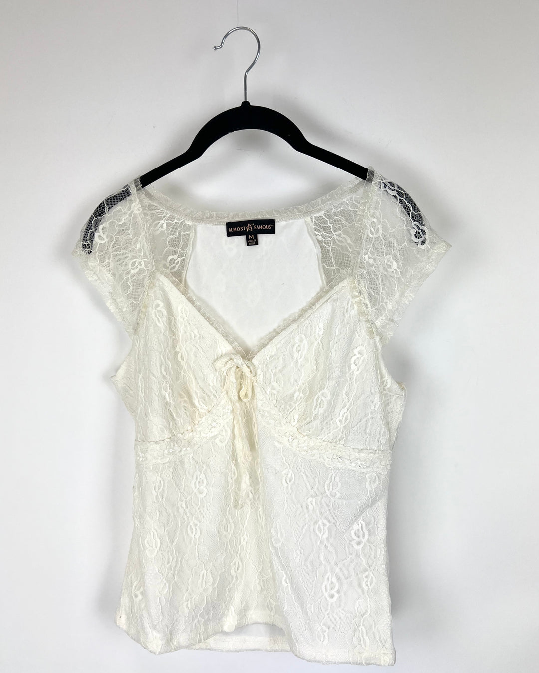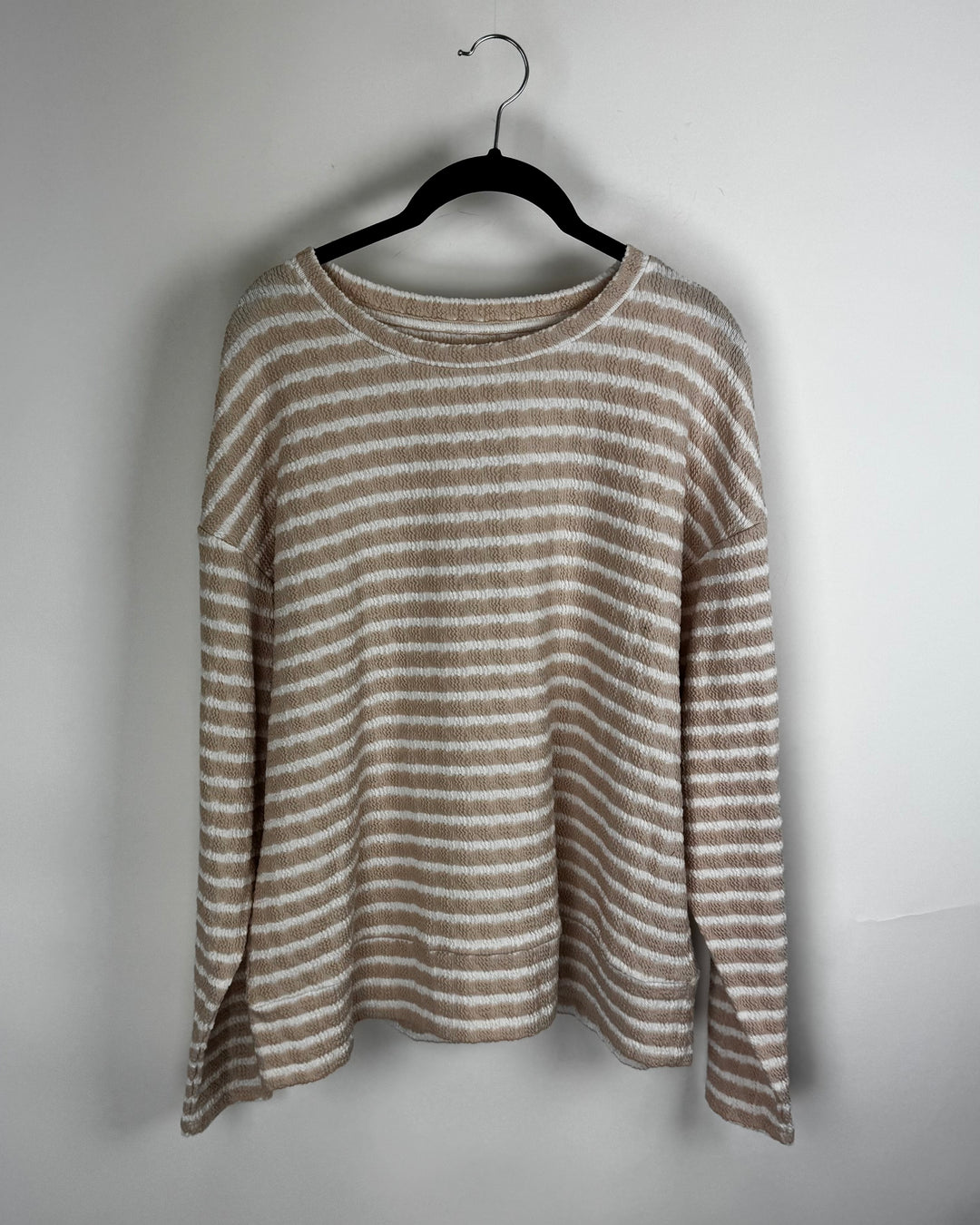 Tan V-Neck Cross Wrap Shirt with Mesh Long Sleeves -Size 2/4