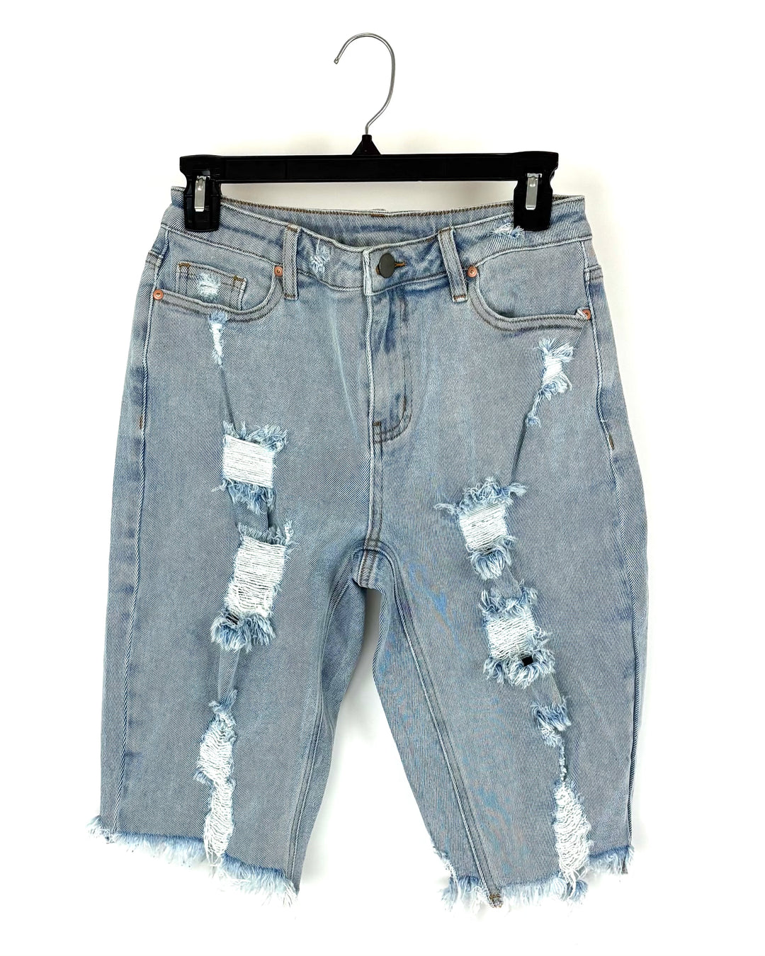 Light Wash Ripped Denim Biker Shorts - Size 2/4