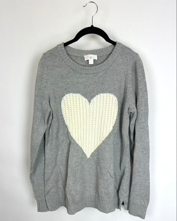White Rhinestone Bow Heart Sweater - Size 14/16