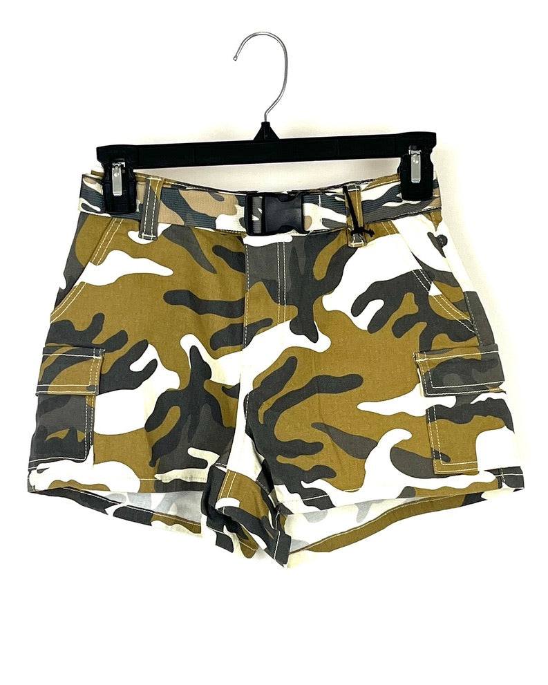 Camo Cargo Shorts with Camo Buckle Belt - Size 2/4
