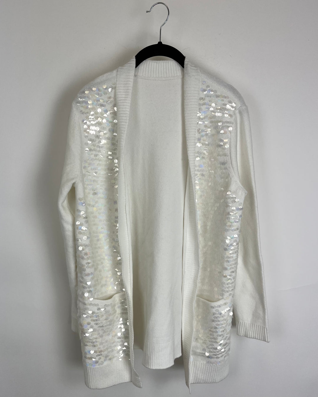 Cream Sequin Quarter Zip Sweater - Size 8/10