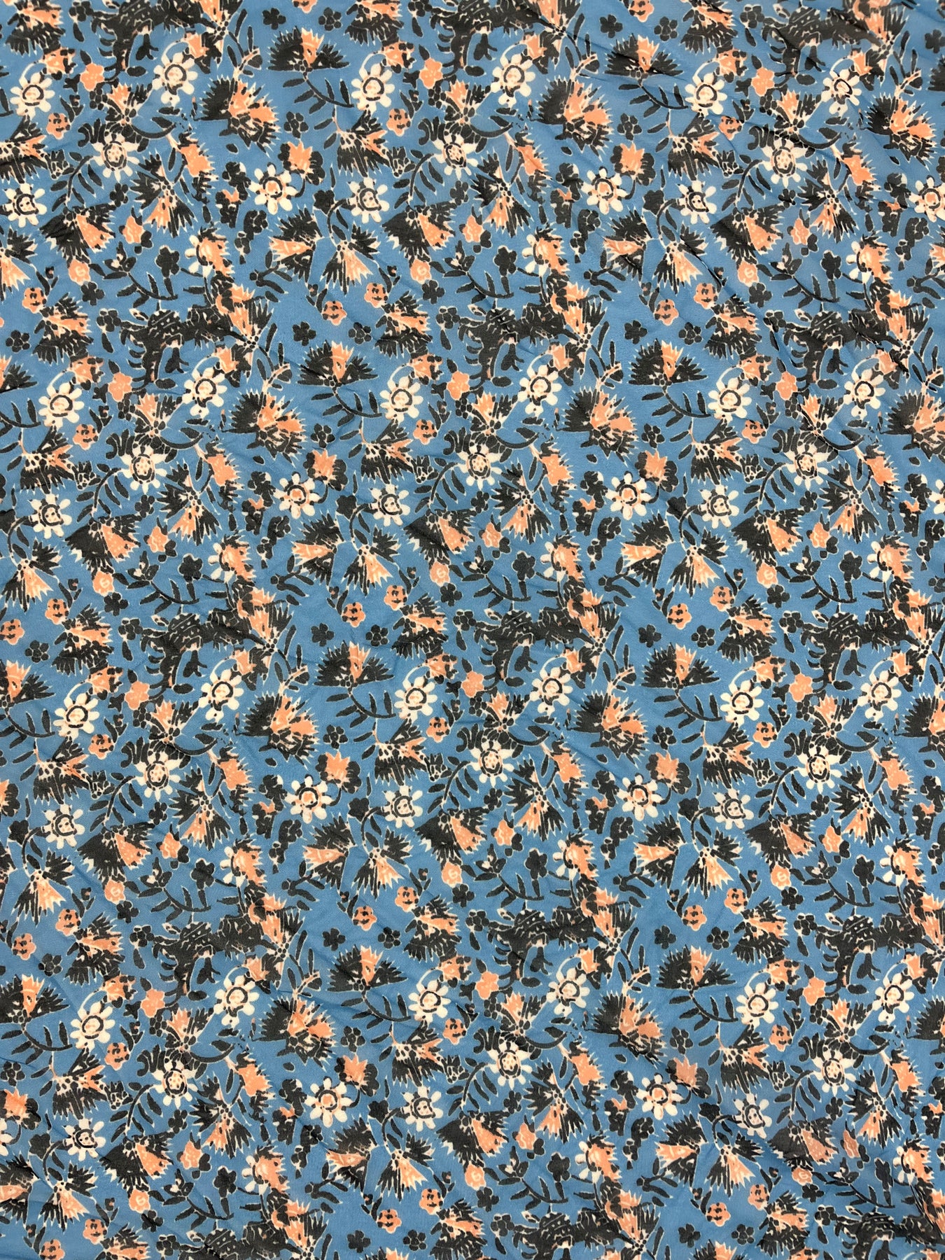 Lightweight, square sized robin blue scarf with burnt orange floral pattern and removable scrunchie. Can be worn a variety of ways like a headband, head scarf, neck scarf, bow, purse scarf, you can even get creative and try it as a belt or top!