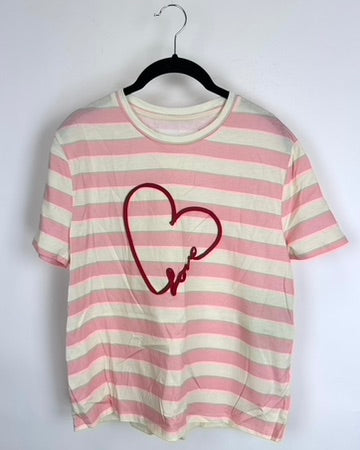 Pink Striped Heart Motif T Shirt - Size 6/8