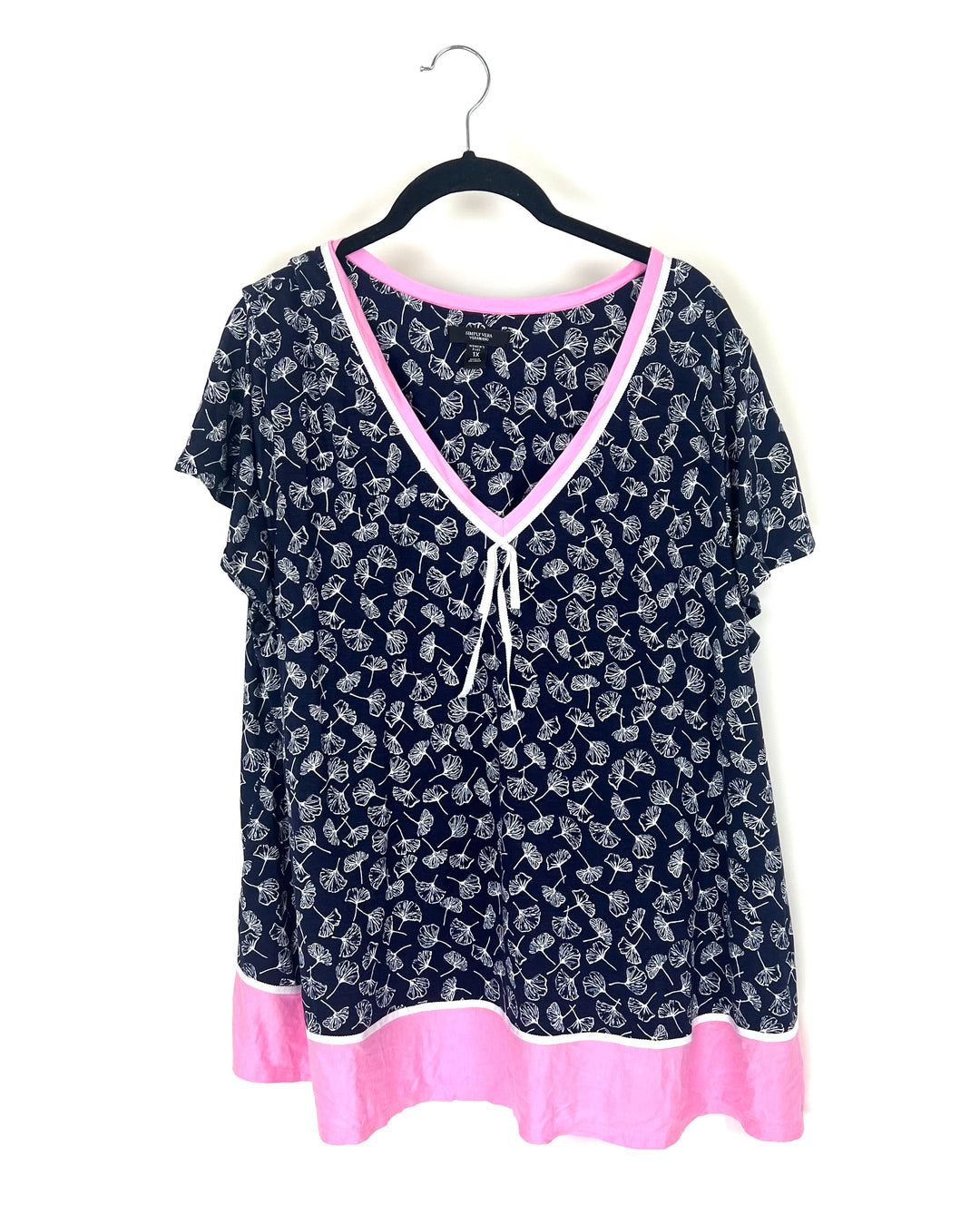 Pink, Blue And White Floral Sleep Shirt - 1X