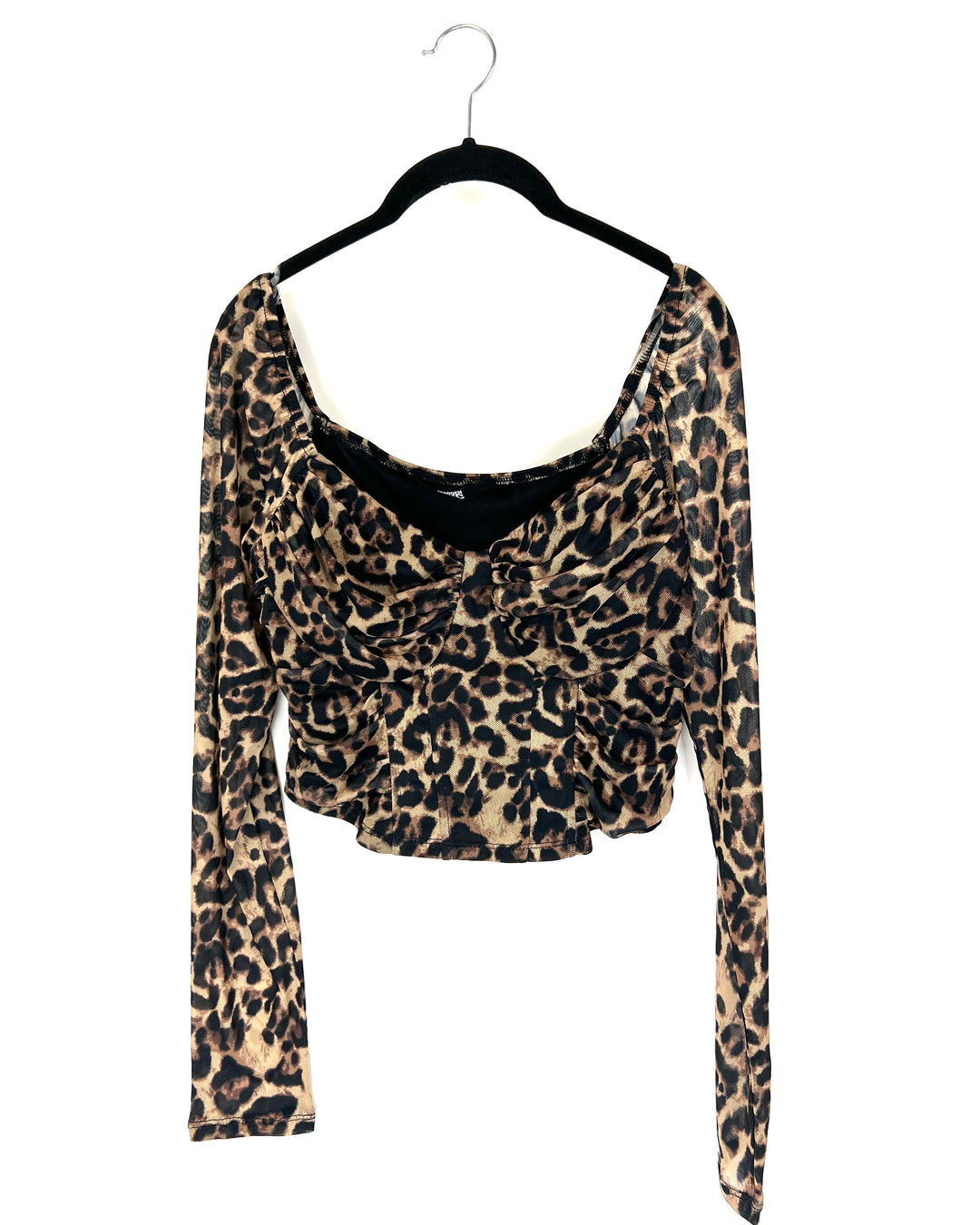Cheetah Print Long Sleeve Crop Top - Size 2/4