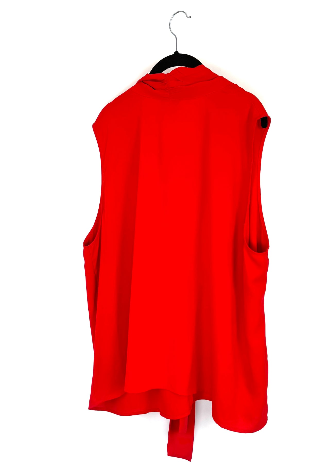 Red Sleeveless blouse top with adjustable tie neckline in a chiffon like fabric