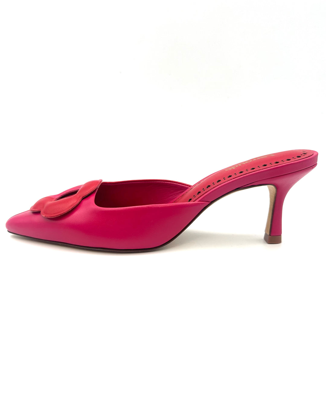 Pink & Red Embossed Flower Kitten Heel - Size 6.5