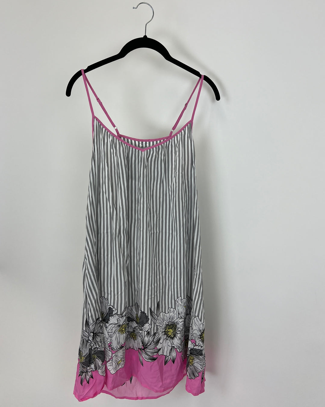Grey And White Striped Floral Lounge Dress - Size 4/6