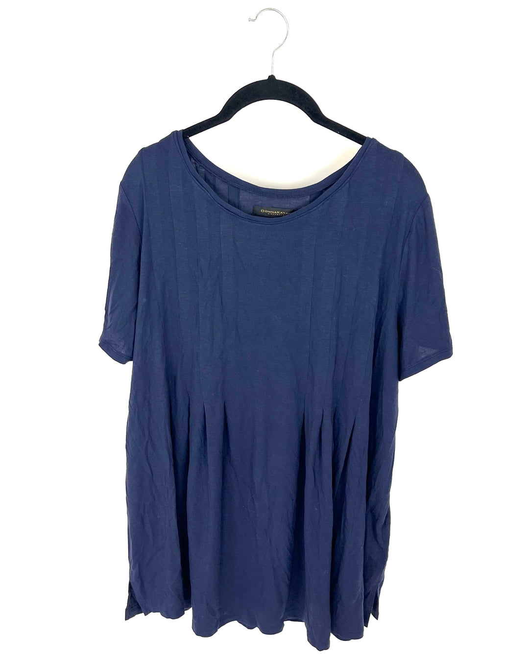 Navy Blue Pleated Loungewear T-Shirt - Size 1X