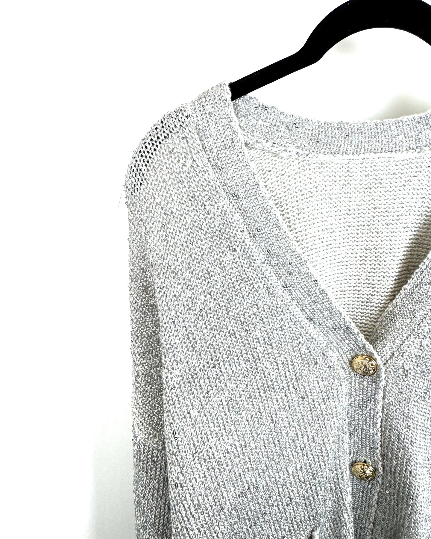 Gray Sequin V-Neck Cardigan - Medium