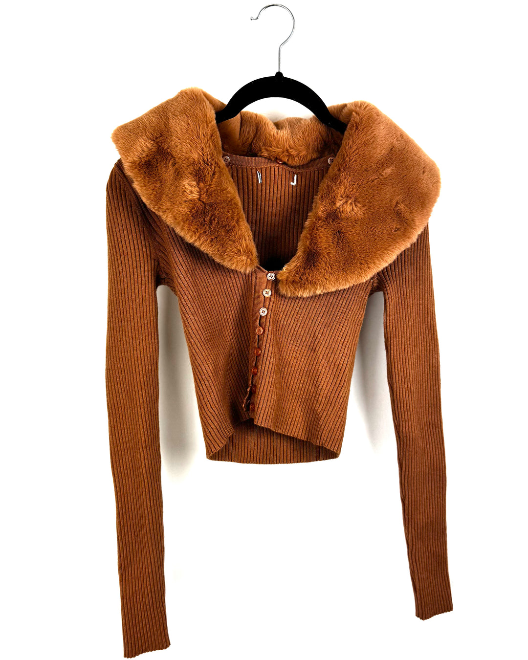 Tan Sweater Top With Faux Fur Collar Size 4/6