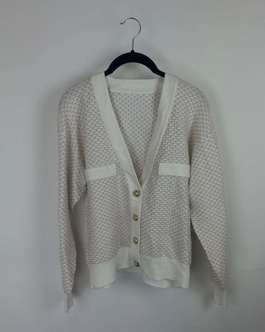 White & Beige Gold Button Cardigan - Small