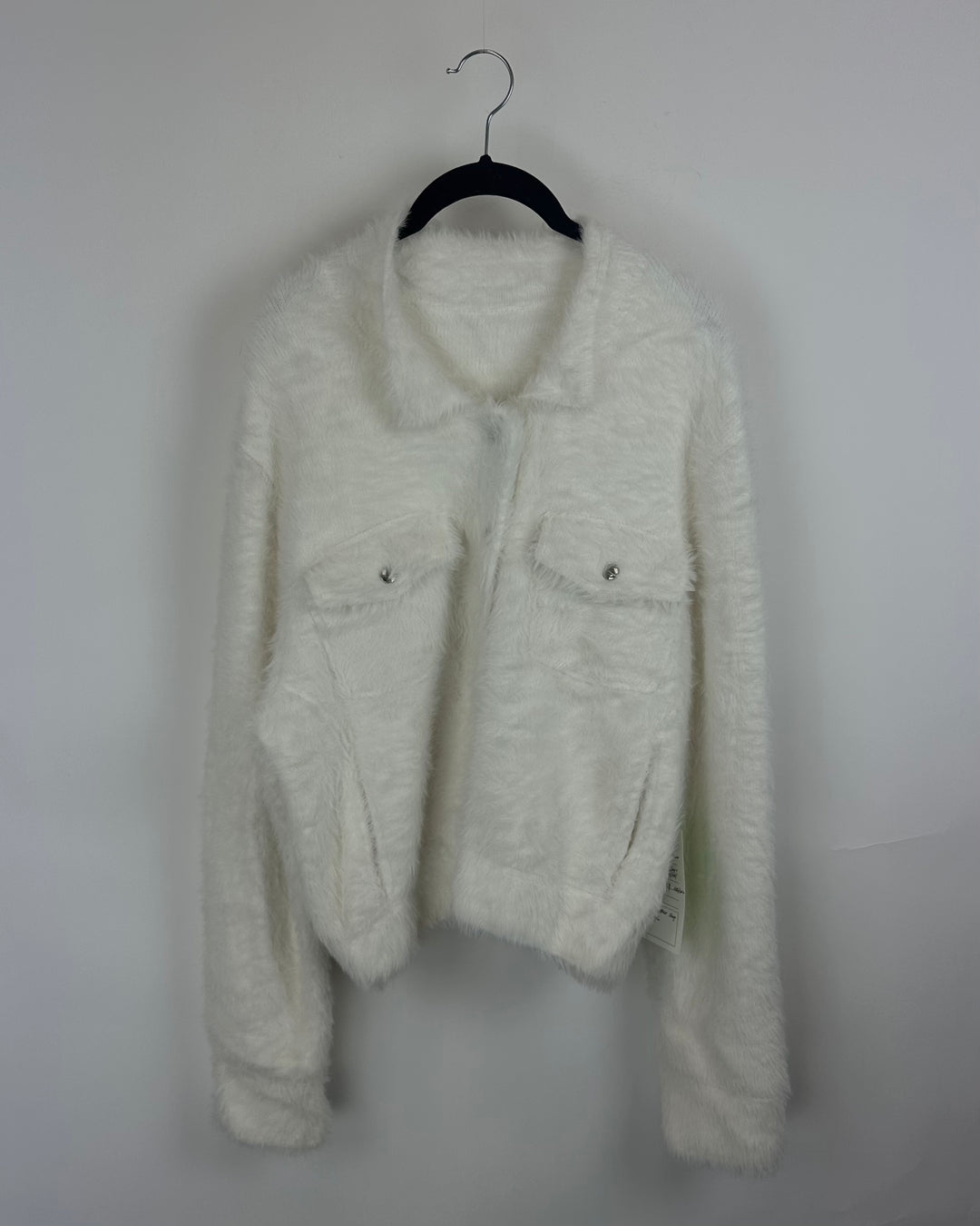White Fuzzy Sweater Jacket - Medium