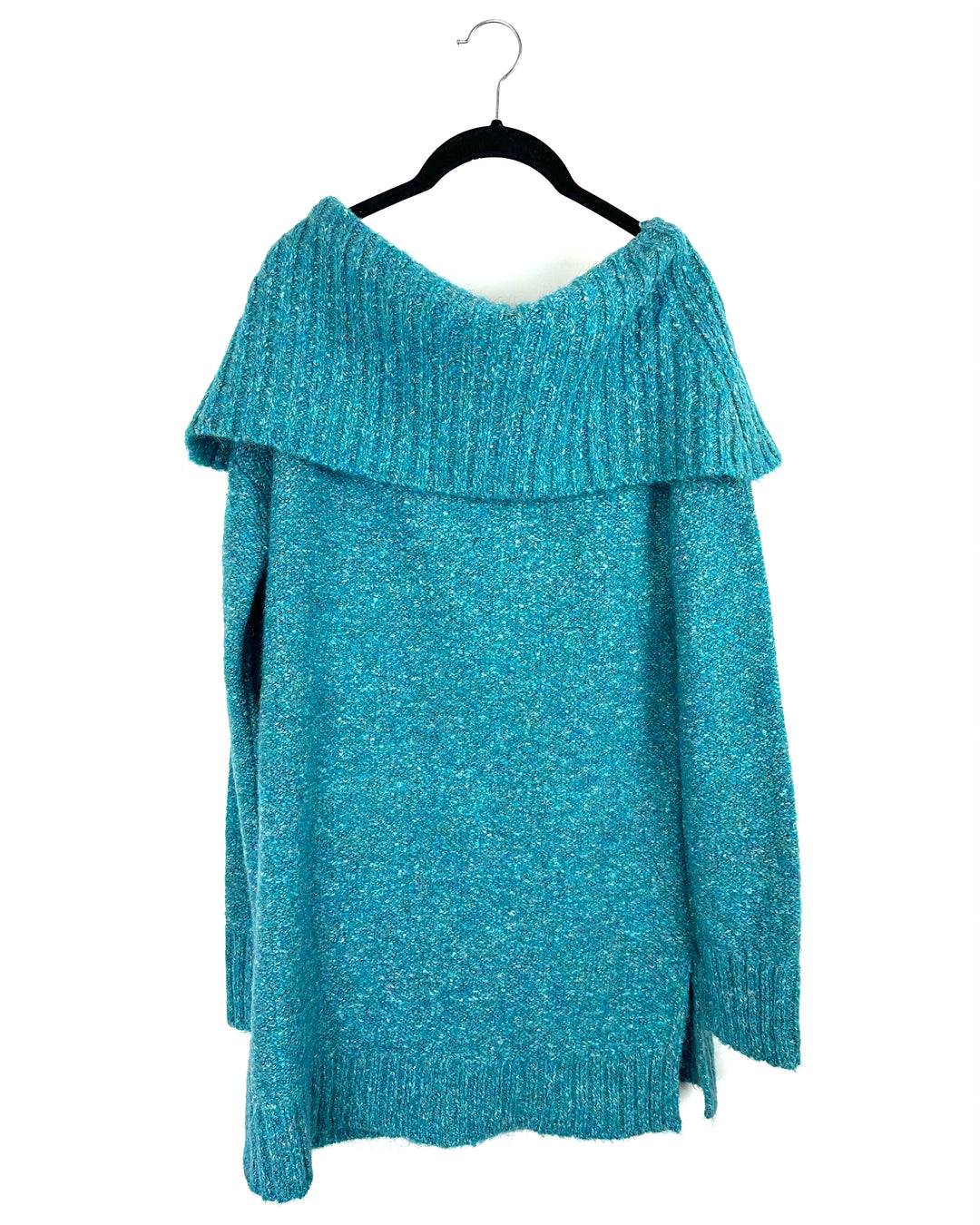 Turquoise Blue Off The Shoulder Sweater - Medium