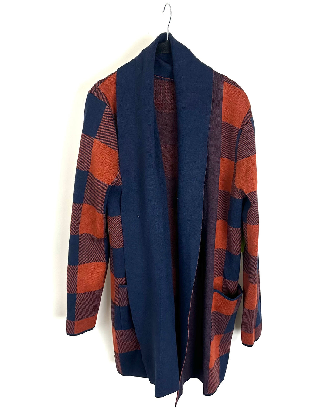 Navy Orange Plaid Open Cardigan - Size 6/8