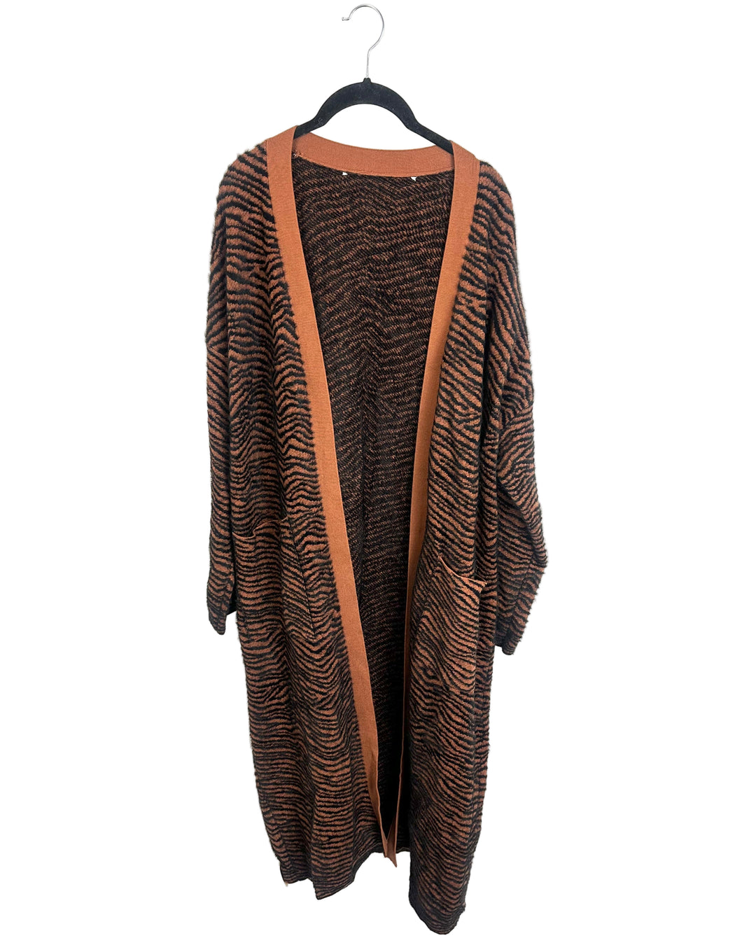 Burnt Orange and Black Stripped Cardigan - Size 8/10