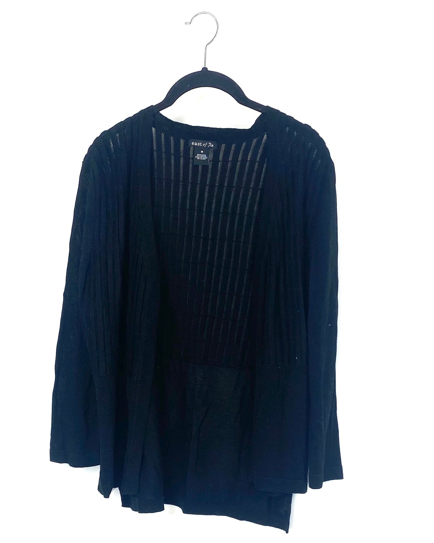 East of 7th black cardigan, slightly sheer with striped pattern and cropped sleeves