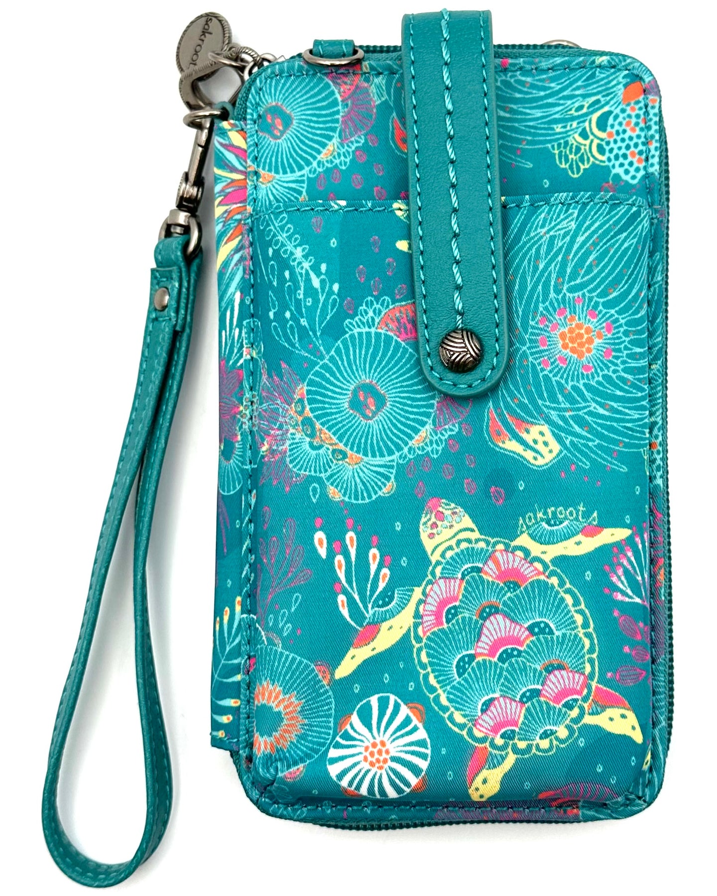 Teal Ocean Motif Wallet/Wristlet/Crossbody Bag