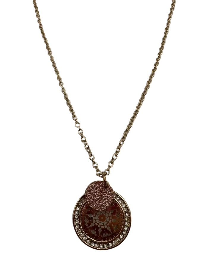 Gold and Coral Hoop Earrings with Gold Semi Circle