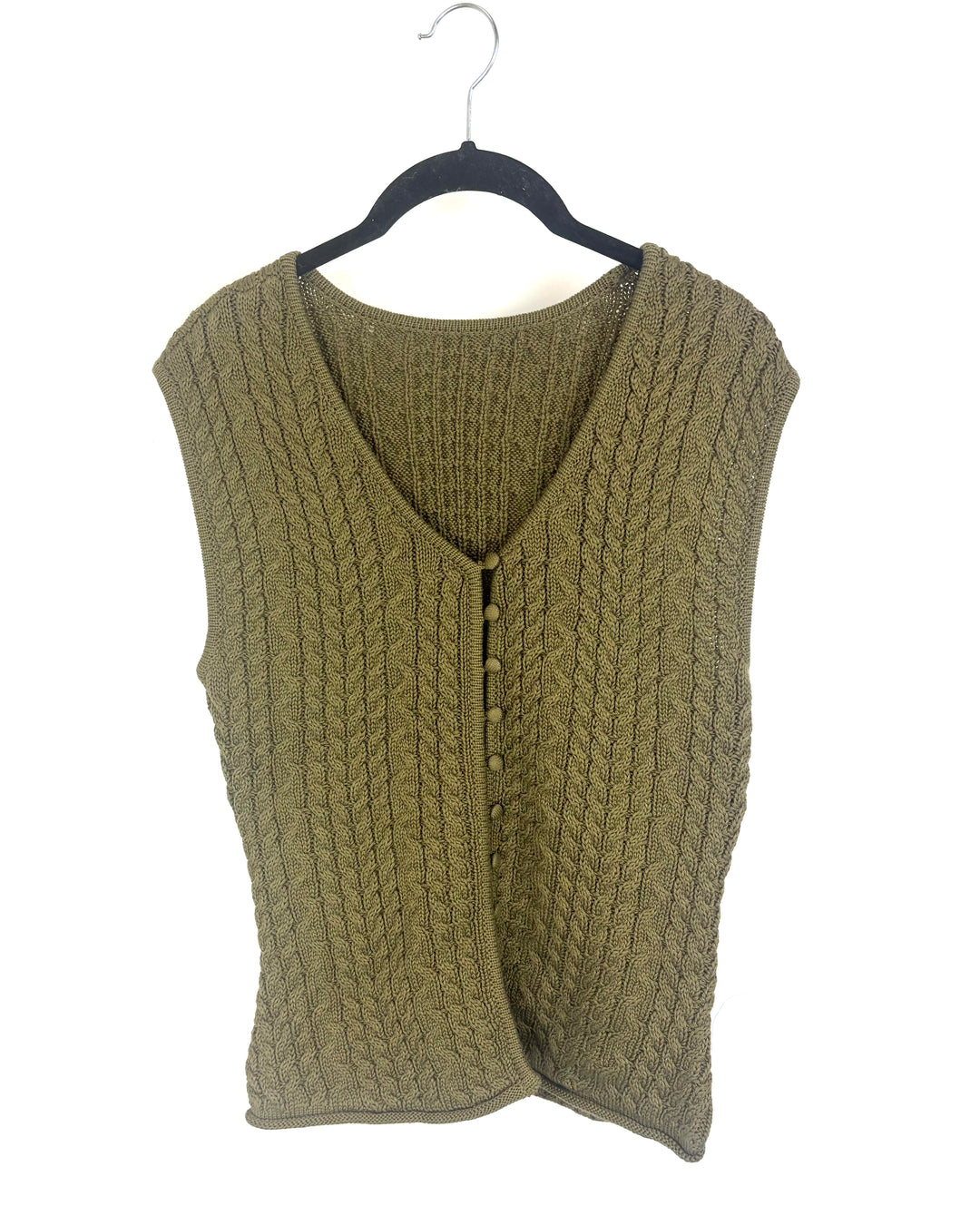 Army Green Knit Button-up Sweater Vest - Medium