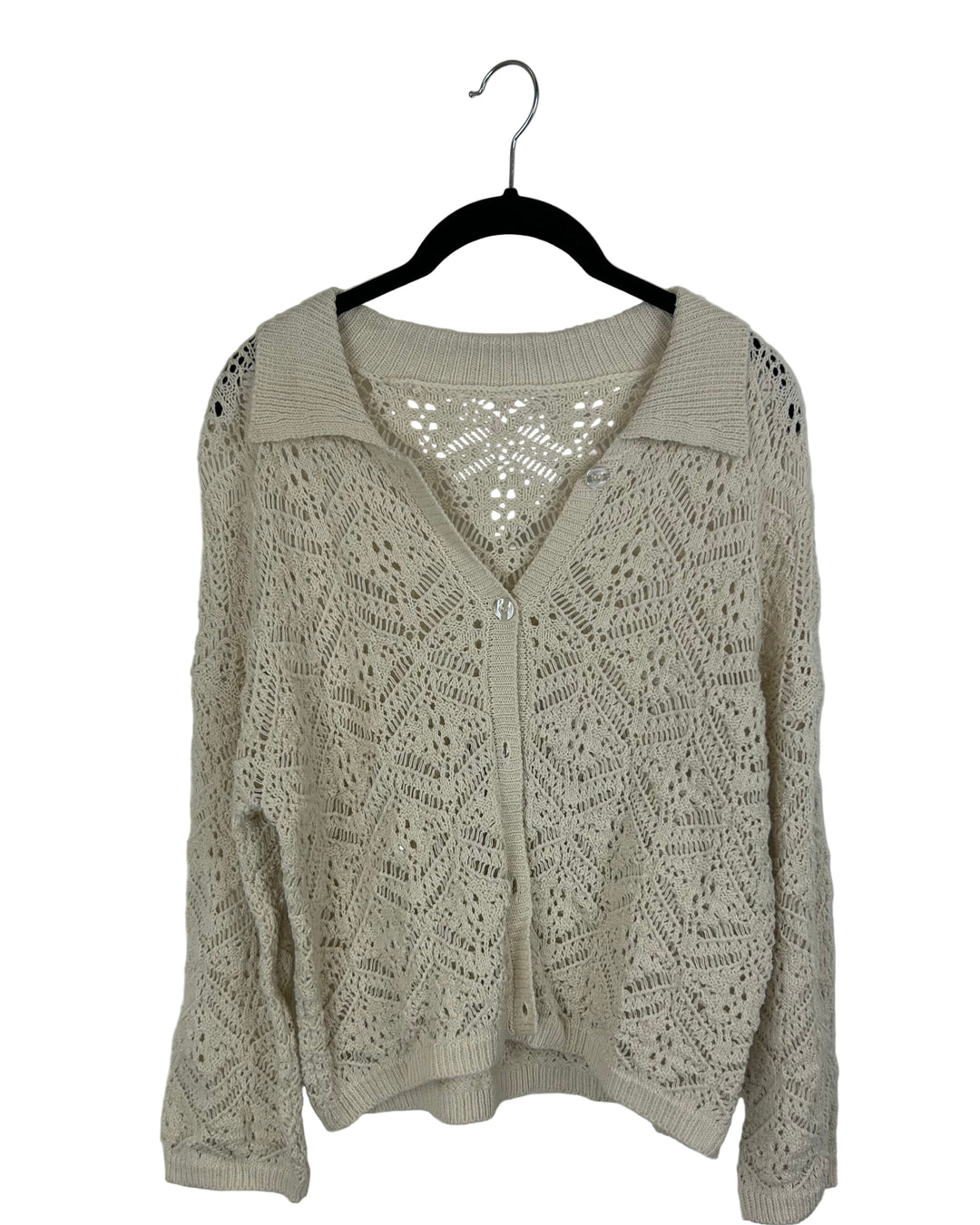 Beige Crochet Cardigan With Collar - Medium
