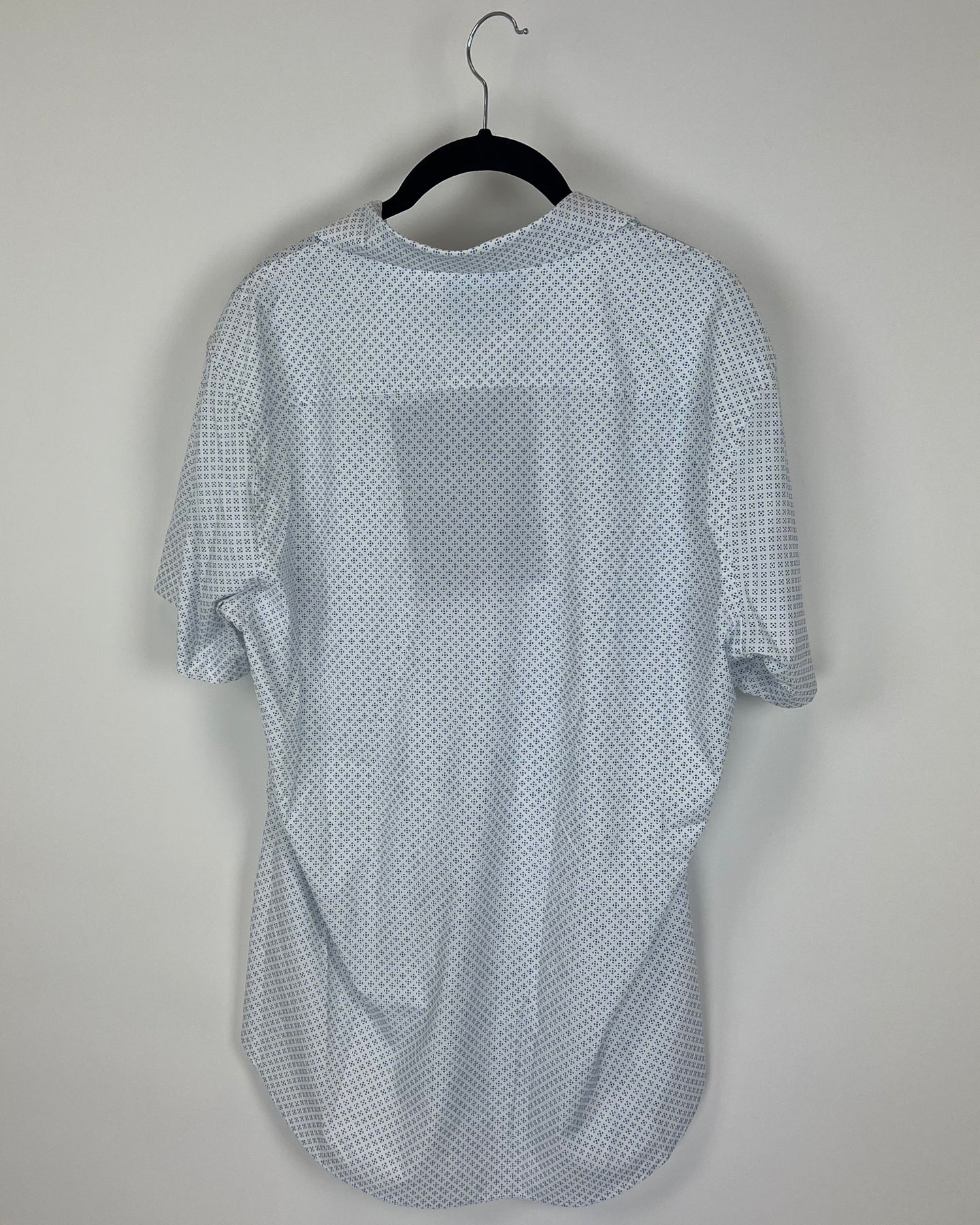 MENS White and Light Blue "Tile" Patterned Button-Up - Medium