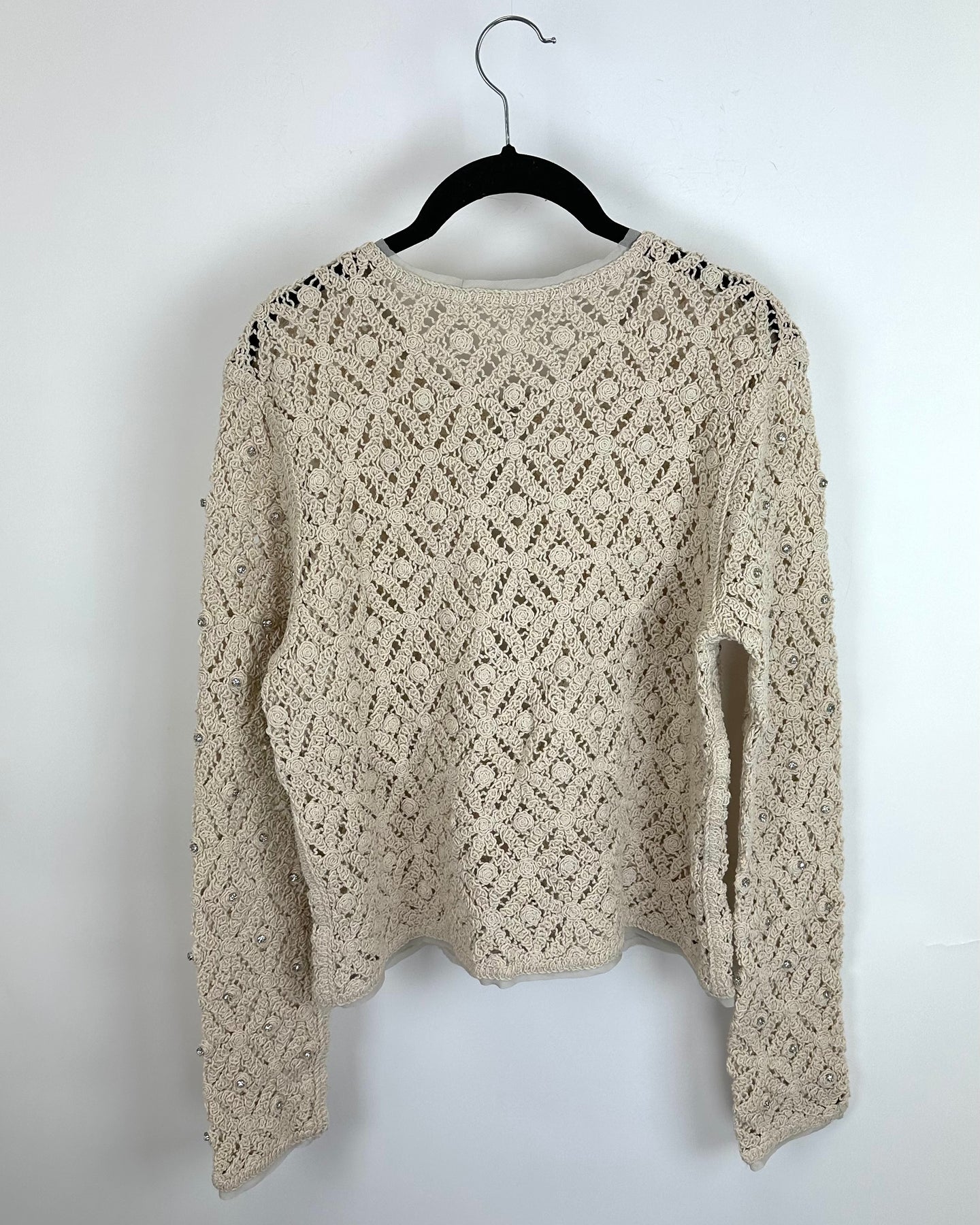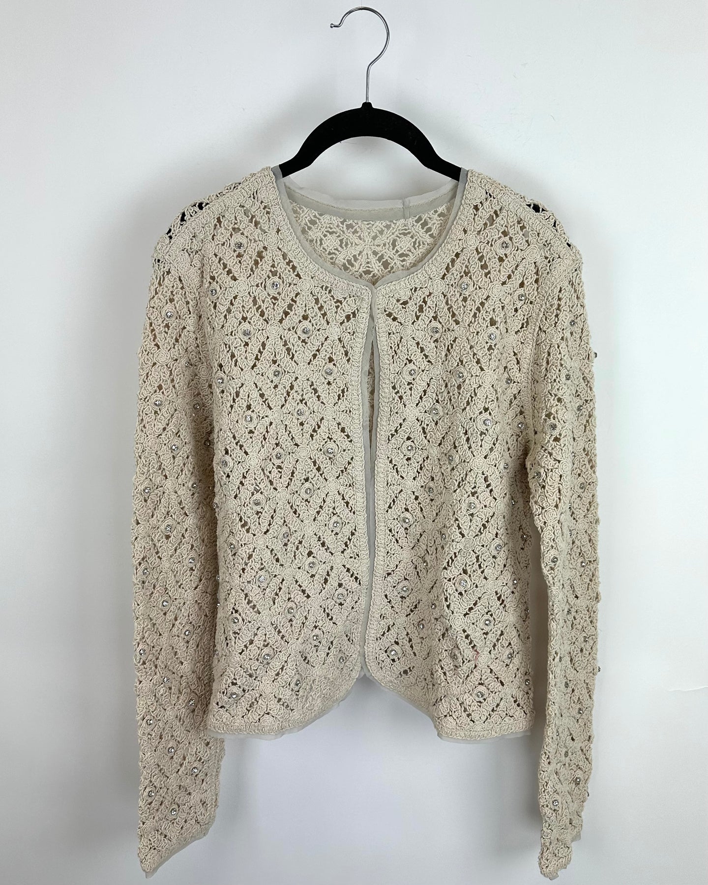 Beige Crochet Cardigan With Rhinestones - Size 4/6