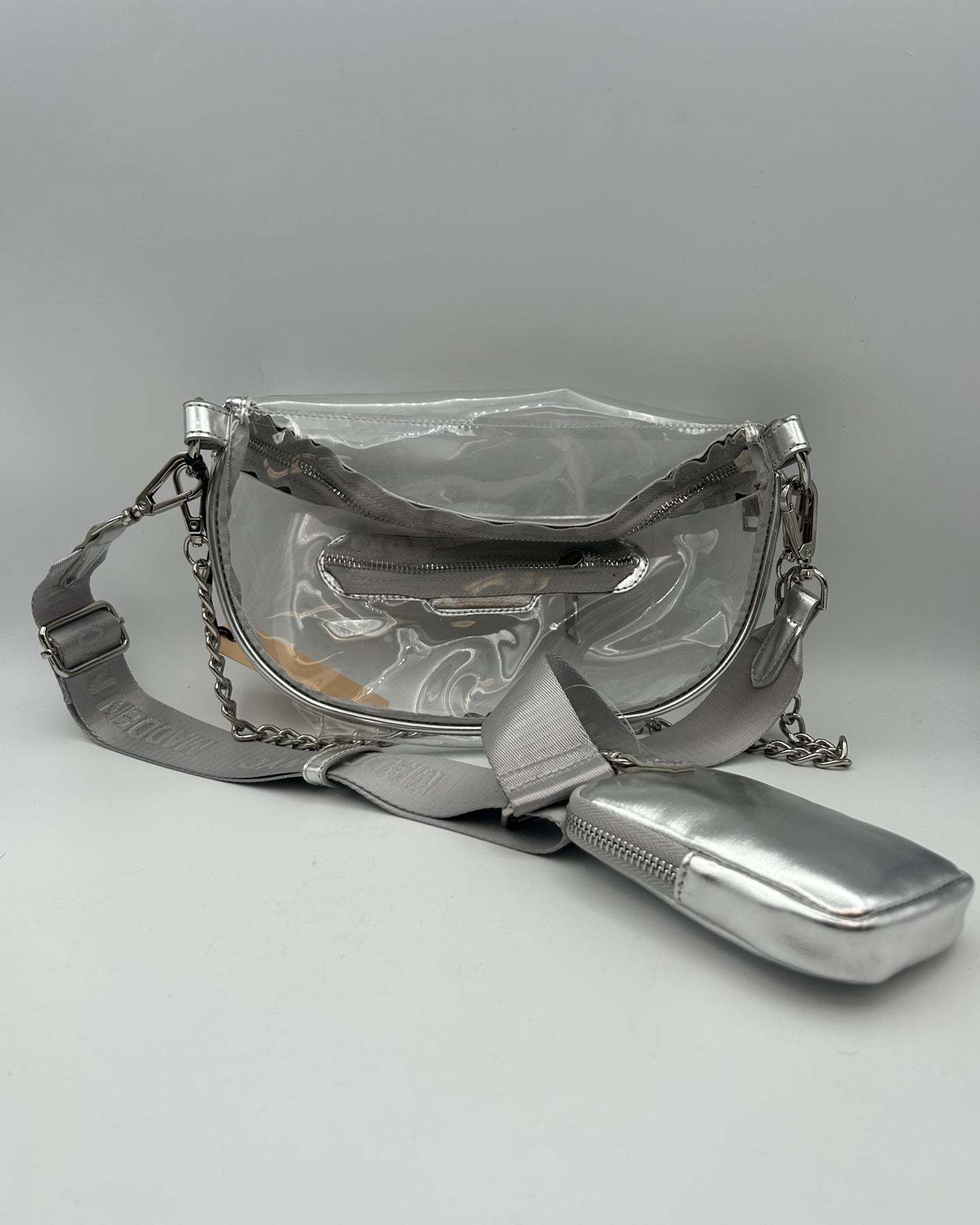 Clear With Silver Detailing Crossbody/Shoulder Bag