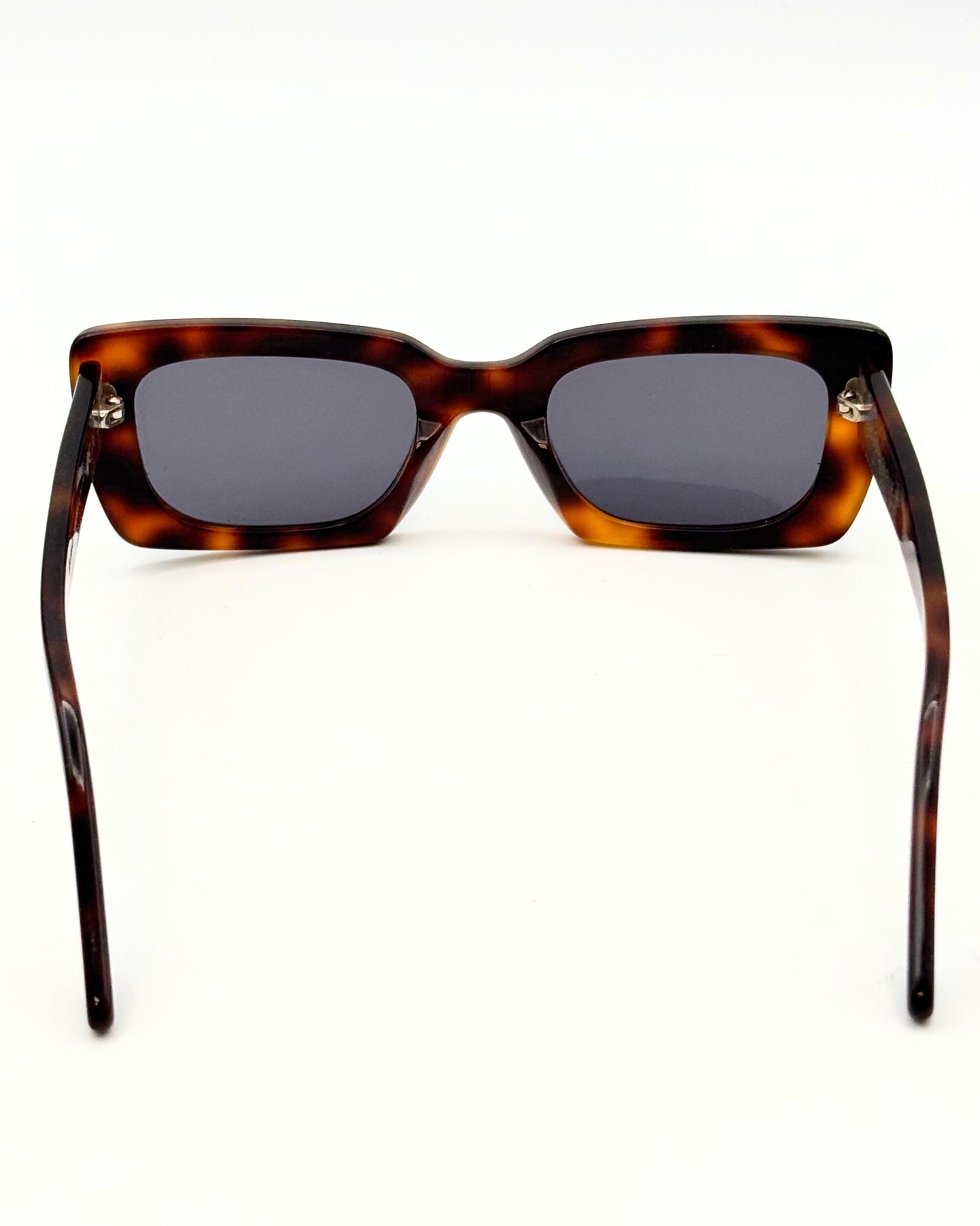 Illesteva rectangle brown sunglasses in a tortoise shell pattern with dark gray lenses
